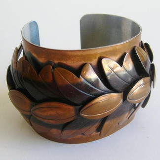 Frank Rebajes- imigrant samouk, który rozwijał własne sposoby na uzyskiwanie różnych efektów wykończenia powierzchni miedzianej. W jego pracach pojawiają się organiczne formy, inspiracja naturą ,abstrakcyjne wiry, twarze.